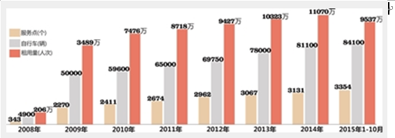 杭州的公共自行车系统规模,已从试运行初的61个服务点、2800辆公共自行车,发展至3354个服务点、8.41万辆公共自行车,建成了具有世界一流水平的公共自行车智能管理系统。