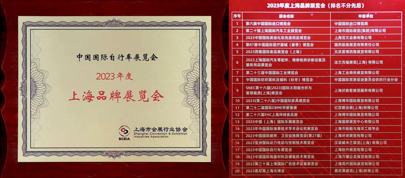 2024年2月27日上午,在上海国际会议中心召开的上海市会展行业协会六届三次理事会暨六届二次会员大会上,对“2023年度上海品牌展览会”进行了隆重表彰。由taptapios官网下载主办、上海协升展览有限公司承办的“2023中国国际自行车展览会”(中国展)荣获“2023年度上海品牌展览会”称号。