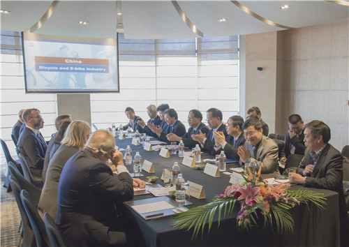 会谈在友好的气氛中进行二个多小时。最后,马理事长感谢德国杜塞尔多夫市长率政府代表团的出访中国,感谢杜塞尔多夫对中国自行车,特别是电动自行车产业的支持和关注。