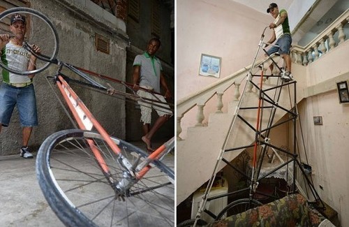 古巴牛人制作巨型自行车 欲申请吉尼斯纪录