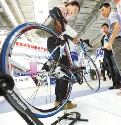 你见过重量比普通自行车轻两倍多的碳纤维自行车吗?9月5日,在第八届东北亚博览会6号馆内,有一辆漂亮又精致的运动版自行车,除少量的零部件外,自行车的骨架和轮子通体都由碳纤维制成,仅为五六公斤重,一个成年人甚至只用两根手指就能轻松将其举起。