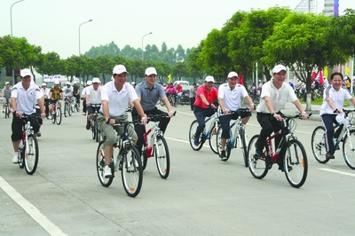 东源县委书记叶少军和县几套领导班子成员率队参加了自行车环城活动。