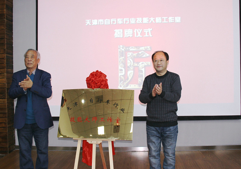郭文玉秘书长、杨茂秀董事长为“天津市自行车行业技能大师工作室”揭牌