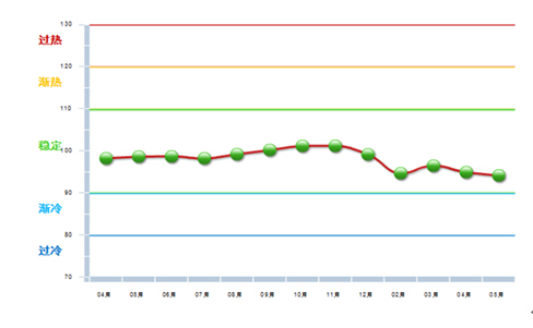图42014.4-2015.5自行车行业利润景气指数变化态势