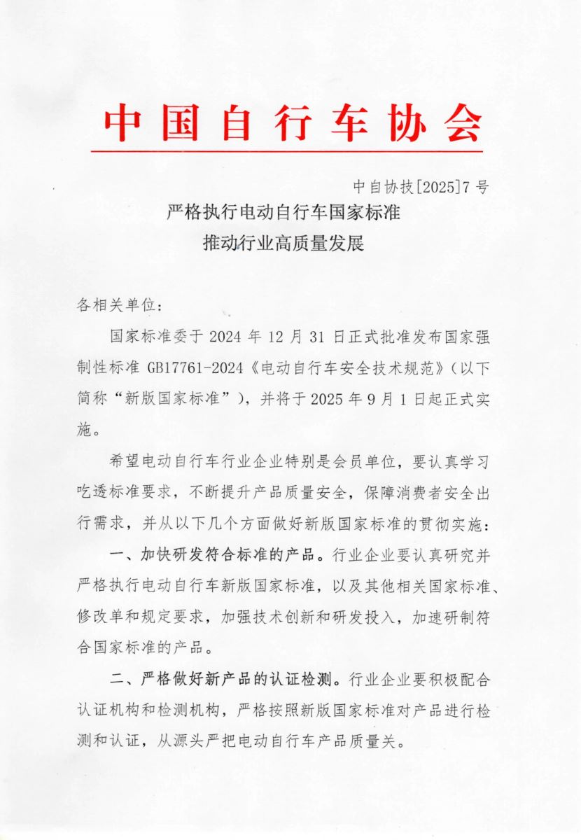 国家标准委于2024年12月31日正式批准发布国家强制性标准GB17761-2024《电动自行车安全技术规范》(以下简称“新版国家标准”),并将于2025年9月1日起正式实施。