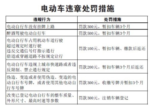 虽然挂牌的具体时间和方案还没公布,但是厦门市交警部门透露,电动车违章处罚措施已经出台。没有挂牌上路的电动自行车,将被罚款300元,暂扣车辆3个月。处罚力度最高的是醉酒驾驶:罚款500元,暂扣车辆3个月。