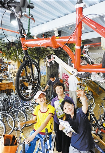 天津:折叠自行车日渐升温 来源:人民网(天津视窗) 作者:王津 摄 发布时间:2011-07-18 12:57 暑期来临,自行车消费日渐升温,记者在天津市几家自行车专卖店看到,前来咨询选购的消费者明显增多。据介绍,除了“驴友”购买的专业自行车,目前折叠自行车销量也很不错。 摘编:admin888; 摘编日期:2011年7月15日