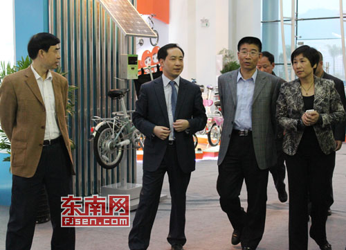 45下午,宁德市副市长黄建龙、市政协副主席黄家盛在东侨开发区党工委副书记、管委会副主任刘金香陪同下,前往会展中心参观乐比锂电自行车展馆。在展厅里,黄建龙详细了解了20多款最新锂电自行车的性能和特点,对企业自主创新产品给予高度评价,同时提出要支持宁德本土企业尤其是新能源、绿色环保型企业的发展。
