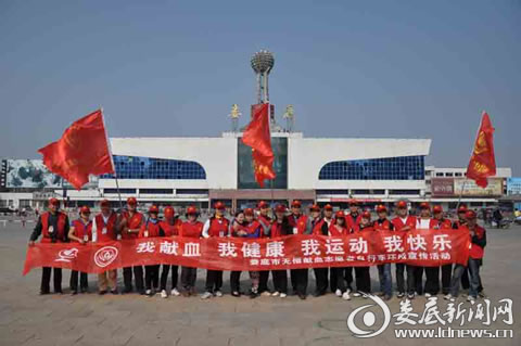 娄底无偿献血志愿者开展自行车环城宣传 来源:娄底新闻网 作者:娄底 发布时间:2011-11-24 11:56 志愿者在火车站广场合影 11月19日上午,娄底市中心血站献血办、市无偿献血志愿者服务队组织30余名无偿献血志愿者开展了一次环城无偿献血宣传活动。志愿者们身穿红色马甲、戴着红色志愿帽,踏着无偿献血宣传专用自行车,擎着3面志愿服务队旗和30多面宣传小旗,途经吉星路、长青街、乐坪街、娄星路、氐星路、火车站路、湘阳街等市内主要街道,在春园步行街、娄星广场、火车站广场及街边商铺等散发献血宣传单,开展献血咨询活动。 摘编:he; 摘编日期:2011年11月24日