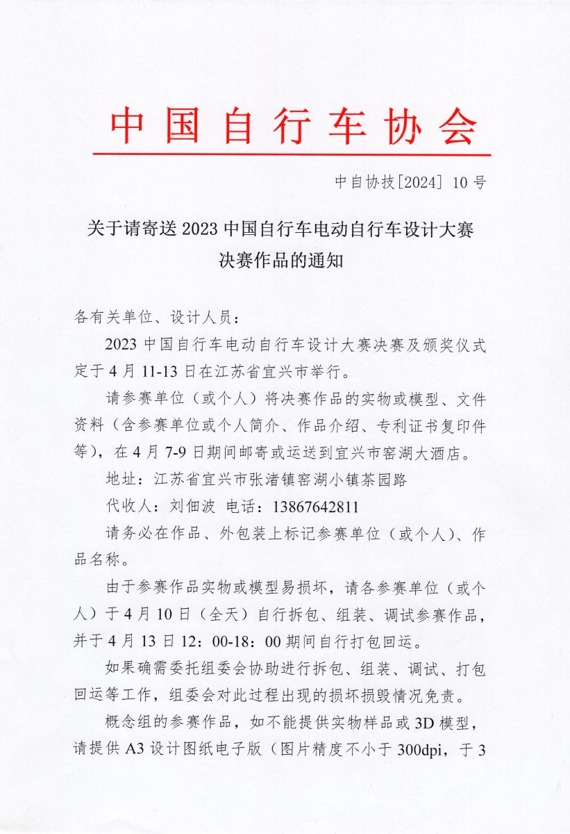 关于请寄送2023中国自行车电动自行车设计大赛决赛作品的通知