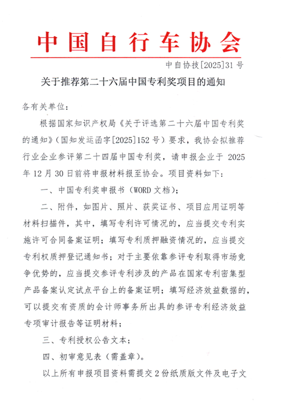 国家知识产权局关于评选第二十六届中国专利奖的通知