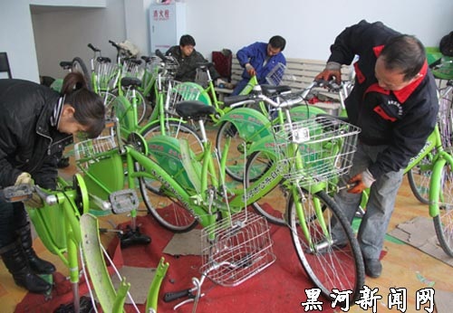 黑河市便民公共自行车入库检修 来源:东北网(黑河日报) 作者:张辉、魏立波、董佳惠 发布时间:2012-12-13 13:21 黑河市便民公共自行车服务管理中心的管理人员日前开始将入库的公共自行车进行检修维护,技术人员逐一对1550辆封存入库的公共自行车进行全面检修维护,让它们完好越冬。 据了解,黑河城区于今年6月在东北地区率先使用便民环保公共自行车,今年的首次运营期也已圆满完成,赢得了广大市民和游客的广泛赞誉。受地缘因素影响,避免冰雪行驶安全隐患,公共自行车在冬季全面封存、进行检修,待明年适时恢复运营。 摘编:admin; 摘编日期:2012年12月4日