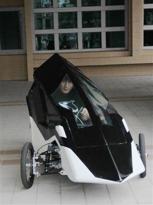 其中,氢能燃料电池车“虎鲸快车”以氢燃料电池为主电力,车辆采前2轮、后1轮的3轮设计,以铝合金为车架材料。参与研究的学生吴峰豪表示,“虎鲸快车”以竞速功能设计,速度可达40多公里,电力可持续2小时;驾驶座上盖采用流线型设计以减少风阻,车体总重