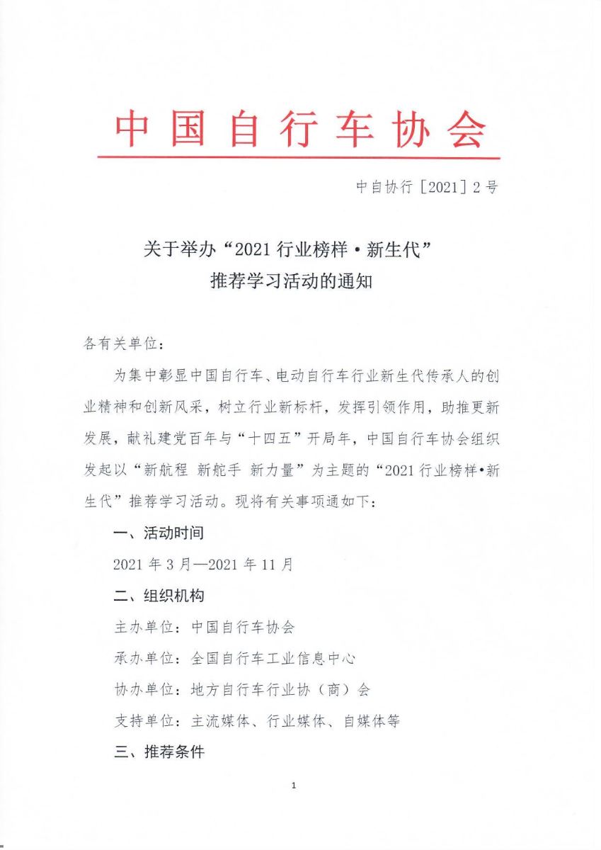关于举办“2021行业榜样•新生代”推荐学习活动的通知