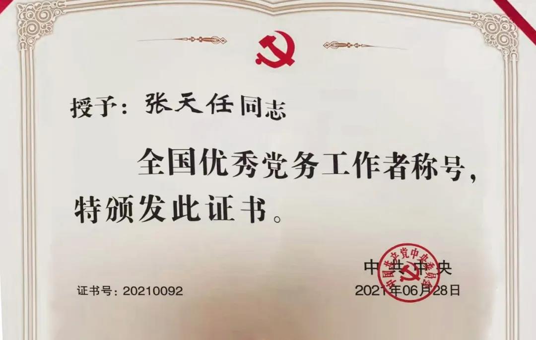 taptapios官网下载副理事长张天任荣获“全国优秀党务工作者”