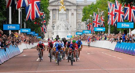图为去年8月份伦敦奥运会公路自行车测试赛时的场景。
