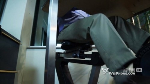 这款运动办公桌采用桌子、椅子一体化设计。在桌子的底下,安装了一个与两边桌脚固定,类似自行车一样的脚蹬。同时,由钢铁材料制成的椅子也能够像汽车座椅一样前后移动,满足不同身高的用户使用。而桌子也特别设计了一个环绕式滑动托盘,主要用于支撑用户在运动时的身体和存放键盘、鼠标等物品。