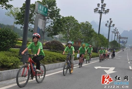 骑行张家界,快活溪布街。10月16日,记者从旅游胜地张家界获悉:本月19日核心景区武陵源将首次举办自行车穿越峰林邀请赛活动,届时来自境内外的2500名自行车手将分六个组别在世界罕见的张家界峰林风光之间上演“骑行芭蕾”,向世人倡导绿色、环保、节能、减排理念的低碳旅行。