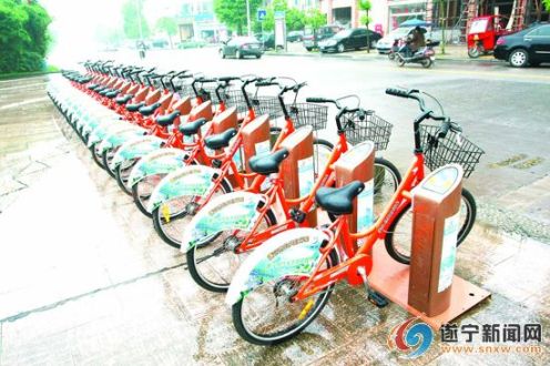 遂宁公共自行车希望有个遮雨棚 来源:遂宁新闻网(遂宁日报) 作者:钟敏 摄 发布时间:2011-10-19 11:09 10月10日上午,细雨霏霏,遂宁市城区滨江北路一排公共自行车整齐地摆放在路旁。刚开通的市城区公共自行车,为市民绿色出行带来了很多方便,大受市民赞赏。当时,由于没有遮雨设施,自行车鞍座被雨淋湿后,行人无法骑行。为此,市民希望相关部门给公共自行车盖个遮雨棚,方便全天候市民出行。 摘编:admin888; 摘编日期:2011年9月19日
