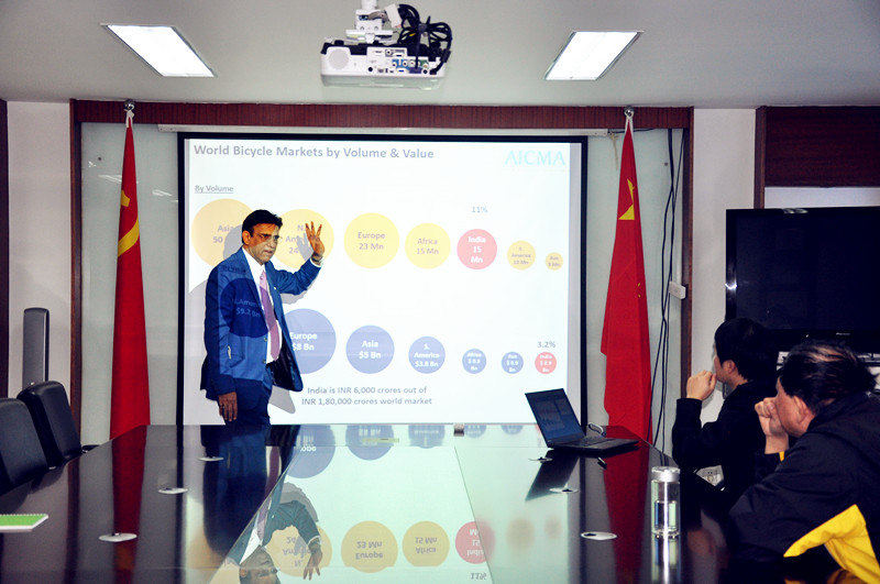 同时,Anil Khurana代表也带来了关于印度自行车制造中心卢迪安纳的相关信息,并通过PPT详实介绍了印度自行车产业的发展情况。印度为全球第二大自行车生产基地,从业人数超过200万人,印度自行车制造中心位于旁遮普邦的卢迪安纳(Luclhiana),产量占全印度的80%,其所生产的自行车不仅满足庞大的国内需求,也凭借价格优势打进美、欧国家,并出口亚、非国家,出口的车种多半是载重、黑色自行车,印度政府也积极推动退税措施,推动自行车的出口。