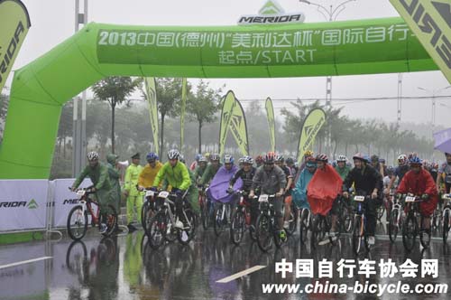 2013年9月21日上午,来自全国各地3000多名自行车爱好者欢聚在具有“九达天衢”美誉的神户德州,在大雨中共同迎来了2013中国(德州)“美利达杯”国际自行车赛的盛大开幕。