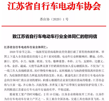 新型冠状病毒肺炎的疫情牵动着每一个国人的心,而此次疫情对自行车、电动自行车行业将产生深刻的影响。为了减少人员聚集和交叉感染,阻断疫情传播,早前就有专家、人民日报建议,少坐公交,骑自行车、电动自行车出行。事实上,对无私家车一族来说,自行车和电动自行车恐怕是广大市民使用最多的交通工具。我们呼吁有关部门能对电动自行车这项老百姓依赖的交通工具给予更多的出行空间,特殊时期放宽电动自行车出行管理。