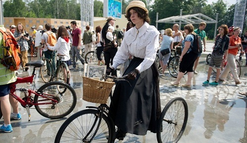 6月9日俄罗斯举办首届“复古自行车赛” 来源:环球网 作者:胥文琦、刘洋 发布时间:2013-06-11 21:58 据俄罗斯RIDUS新闻网6月9日消息,俄罗斯首届“复古自行车赛”9日在莫斯科“索科尔尼基”公园举行。 据了解,与其它自行车比赛不同的是,参加此次“赛跑”的自行车全部都是1860年至1980年期间的复古自行车。 据报道,此次活动共吸引了约百人参加,他们身穿与所骑自行车年代相符的复古服装,展示了那个令人怀念的、遥远时代的人们生活。 摘编:hejuelin; 摘编日期:2013年6月10日