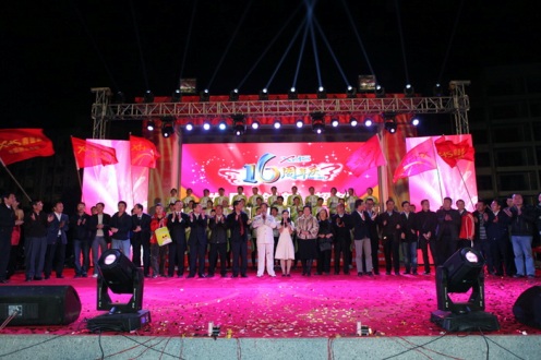 17:30,庆典大会正式开始。会上,谭伟龙董事长对喜德盛16年的发展做了较详尽的总结,对供应商、经销商及公司的干部员工多年来的合作、努力表示衷心感谢,并勉励全体干部员工和联盟伙伴们继续发扬合作精神,努力奋进,共同走向更加辉煌的明天。