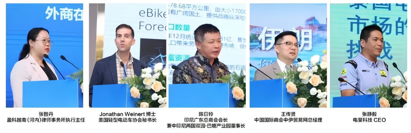在接下来的时间里,盈科越南(河内)律师事务所执行主任张智丹对中资企业赴越市场准入及法律规范情况进行了详细解读,帮助与会企业了解和掌握在越南市场拓展中的法律合规要求。出口目的国的代表们依次介绍了各自国家的电动车产业市场需求。美国轻型电动车协会秘书长Jonathan Weinert博士,印尼广东总商会会长兼中印尼两国双园·巴塘产业园董事长陈日铃,以及中国国际商会中伊贸易网总经理王传贤,分别从不同角度阐述了美国、印尼、伊朗等国的市场现状与潜力,为中国电动车企业“走出去”提供了宝贵的市场信息。