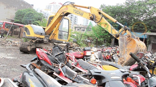 5月29日下午,在荆州市交管局报废车辆停车场,284辆无牌无证、改装拼装、超期服役的摩托车、电动车,被公开报废销毁。近百名各行各业的驾驶员代表、驾校学员代表和民警群众,见证了这些引发交通事故、破坏交通秩序的“隐患”,被碾压切割,顷刻间化为废铁。据荆州交管部门介绍,目前,城区共有摩托车、电动车近20万辆,数量大、涉及面广,驾乘人员交通安全意识、交通法规意识淡薄。因此,摩托车、电动车一直以来都是诱发城区道路交通事故的罪魁祸首。