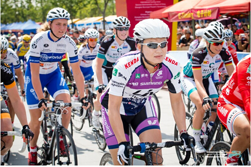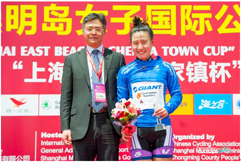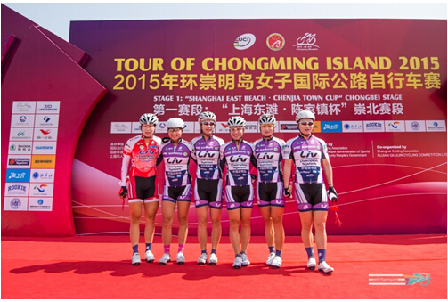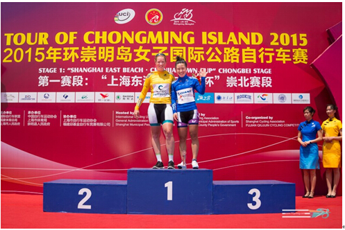 2015年5月13日,2015年环崇明岛女子国际公路自行车赛迎来首站。KMC赞助车队——中国崇明-丽芙-卓比奥斯女子职业队车手白月斩获蓝色领骑衫。