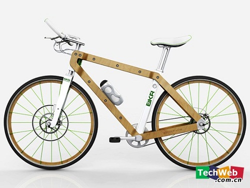 BKR是由意大利设计师Pietro Russomanno设计的一款木制框架概念自行车,主框架由两层胶合板中间夹一层橡胶垫做成,充分利用了木材的延展性和弹性,橡胶垫则起到减震作用。
