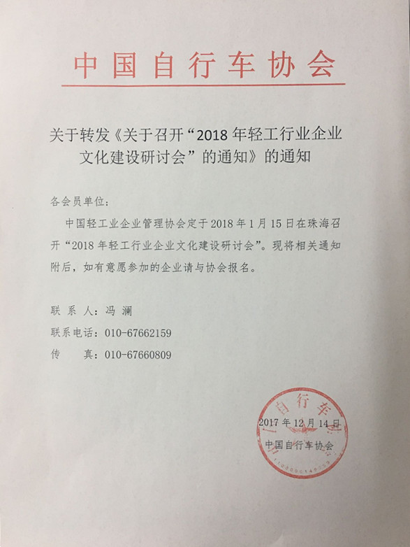 关于转发《关于召开“2018年轻工行业企业文化建设研讨会”的通知》的通知