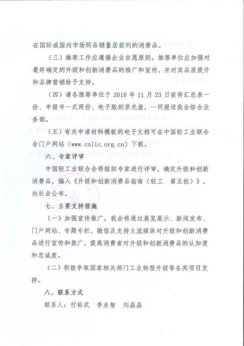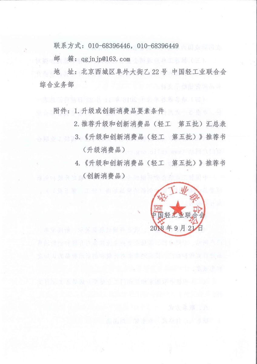 附件3:《升级和创新消费品(轻工 第五批)》推荐书(升级消费品)