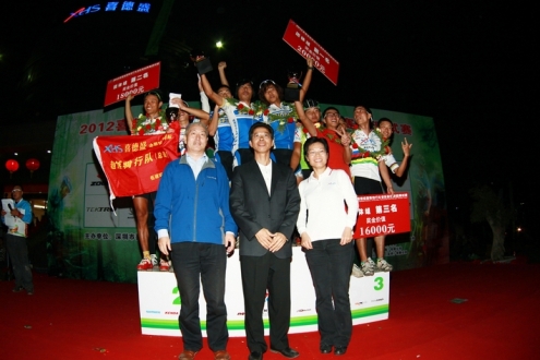 喜德盛公司谭伟龙董事长、李楚乔副总及广东省电动车自行车行业协会秘书长马助森为团体组颁奖