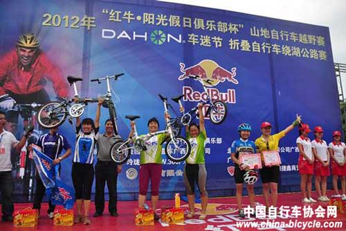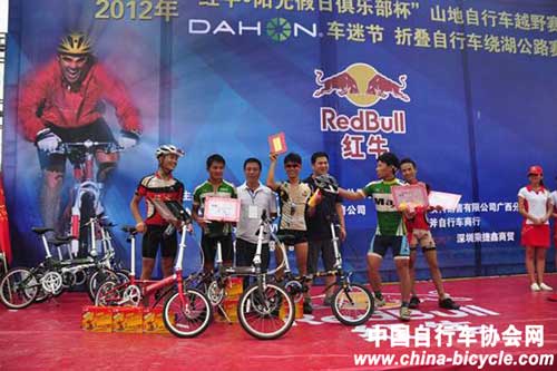 6月30日,由柳州英铭自行车有限公司主办的“2012年DAHON车迷节.折叠自行车绕湖公路赛”在广西柳州山水宜人的千亩湖公园赛出。