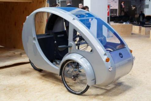 在本届CeBIT大展上我们见到了一款无法进行简单分类的“汽车”,这款由Organic Transit公司打造的Elf电动三轮车采用了日常自行车见到的轮辋设计,由内置蓄电池和太阳能面板提供电力供应,前置有点类似于传统的小型汽车,整车重量为 92磅,造价为$4000,目前已经开始在 Kickstarter平台上募集资金。