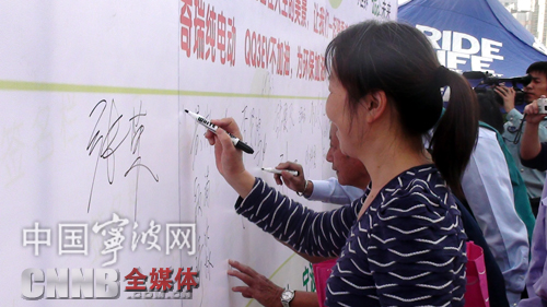 当天上午10点,记者看到社区、企业、车友俱乐部代表及100名文明交通志愿者等齐聚老外滩。活动开始后,交通志愿者以及在场群众纷纷上台,在无车日倡议横幅上签下自己的名字。市民