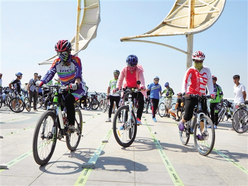 包头晚报讯 20日,自行车环保慢骑赛在南海湿地景区开赛,50多名自行车爱好者参加比赛,争相较量谁骑得更慢。