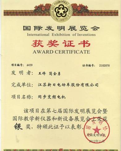 在刚刚结束不久的第七届国际发明展览会,共有来自30多个国家的3000多个项目参展,是近年来规模最大的一次发明专利成果及教学装备国际展示交易活动。作为电动车行业唯一一家参展企业,服务过北京奥运会和上海世博会的新日电动车在此次展会上凭借过硬的产品技术摘得多项大奖。其中同步变频电机技术和变频控制器拿下2个银奖,E5代最新产品博雅2代荣获发明展铜奖,获得业内的肯定。
