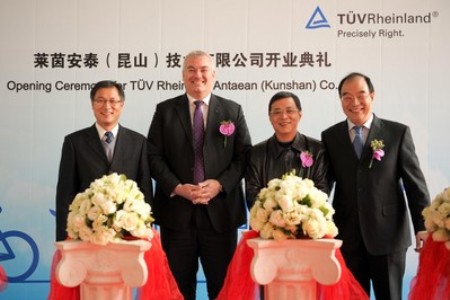 2012年12月7日,莱茵安泰(昆山)技术有限公司开业典礼在苏州昆山成功举办。该实验室为德国莱茵 TUV 集团与昆山出入境检验检疫局(CIQ)携手成立的专业自行车检测实验室,旨在为自行车企业提供专业的自行车、电动自行车、零部件及附件的一站式第三方检测检验服务。值得关注的是,该实验室为德国莱茵 TUV 集团在大中华区成立的首家自行车检测实验室,其遍布大中华区的专业团队及服务网络将为自行车生产厂商提供一站式服务,助力企业进一步开拓全球市场。开业典礼现场,与会嘉宾共同见证了德国莱茵 TUV 集团在该领域的突破与成长。