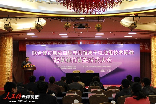 3月24日上午,作为第12届中国北方自行车电动车展的重要活动之一,联合修订电动车用锂离子电池组技术标准(天津地方标准)草签仪式举行。该标准由中国化学与物理电源行业协会、天津市自行车电动车行业协会联合修订,30余家国内锂电企业和天津电动车整车企业积极参与。此次修订规范,将对改变锂离子电池产品非标化状态、推进锂电技术进步、实现市场化开发、推进国内电动自行车产品结构调整优化和升级等产生极大推动作用。