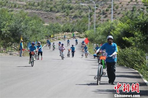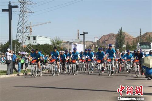 中外青少年甘肃金昌参加自行车赛 考验自我生存能力