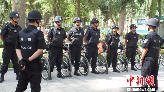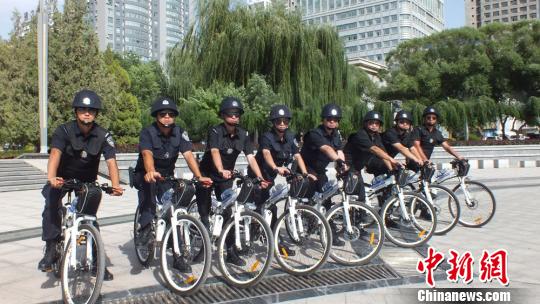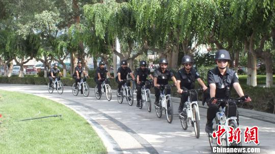 在新疆库尔勒市,有一队骑自行车的特殊巡警,他们全副武装出没在城市大街小巷、集市公园,成为防控维稳的一道亮丽风景线,被市民称为“最美的特别巡警。”
