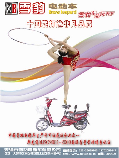 天津雪豹电动车有限公司成立于1998年,是国内首批专业设计、研发、生产及销售电动自行车的高科技企业之一。十多年的不断发展,如今雪豹已在北京、天津、上海、郑州、杭州、四川、云南、湖南、河北、山东等地建立起庞大的销售网络,而且产品出口匈牙利、澳大利亚及东南亚等国家和地区。