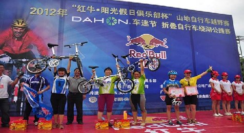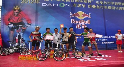 6月30日,由柳州英铭自行车有限公司主办的“2012年DAHON车迷节.折叠自行车绕湖公路赛”在广西柳州山水宜人的千亩湖公园赛出。