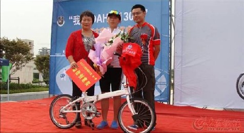 图11:山东朱总给“我和DAHON 30年”摄影大赛一期获奖者颁奖。