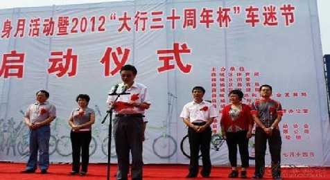 7月14日,由枣庄华铭车业有限公司主办、枣庄市薛城区特邀省内9支单车俱乐部,举办了2012年全民健身月暨庆祝“大行三十年”车迷节活动,共有500多名自行车爱好者参加。枣庄骑行活动是本次大型活动的第一站,接下来会在徐州、济宁、青岛、泰安、滨州、德州、济南、临沂、聊城、东营、淮北等11个城市陆续举行。