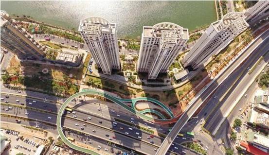 这条空中自行车道为桥梁高架形式,沿厦门已有的BRT(快速公交)桥两侧布置,沿途串起厦门多个主要商业中心和厦门市行政服务中心,并与沿线的BRT站点、地铁站、公交站设置接驳。