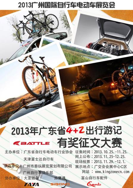 2013广州(国际)自行车电动自行车展览会,是一个主要面向华南市场的品牌展,展商主要是品牌商、代理商和OEM,观众也主要针对业内人士,包括国内外自行车、电动自行车及零配件的品牌商、代理商、自行车商城、大学生消费群、贸易进出口、俱乐部等。2013展会期间在11月29日至12月1日,欢迎大家进馆参观。